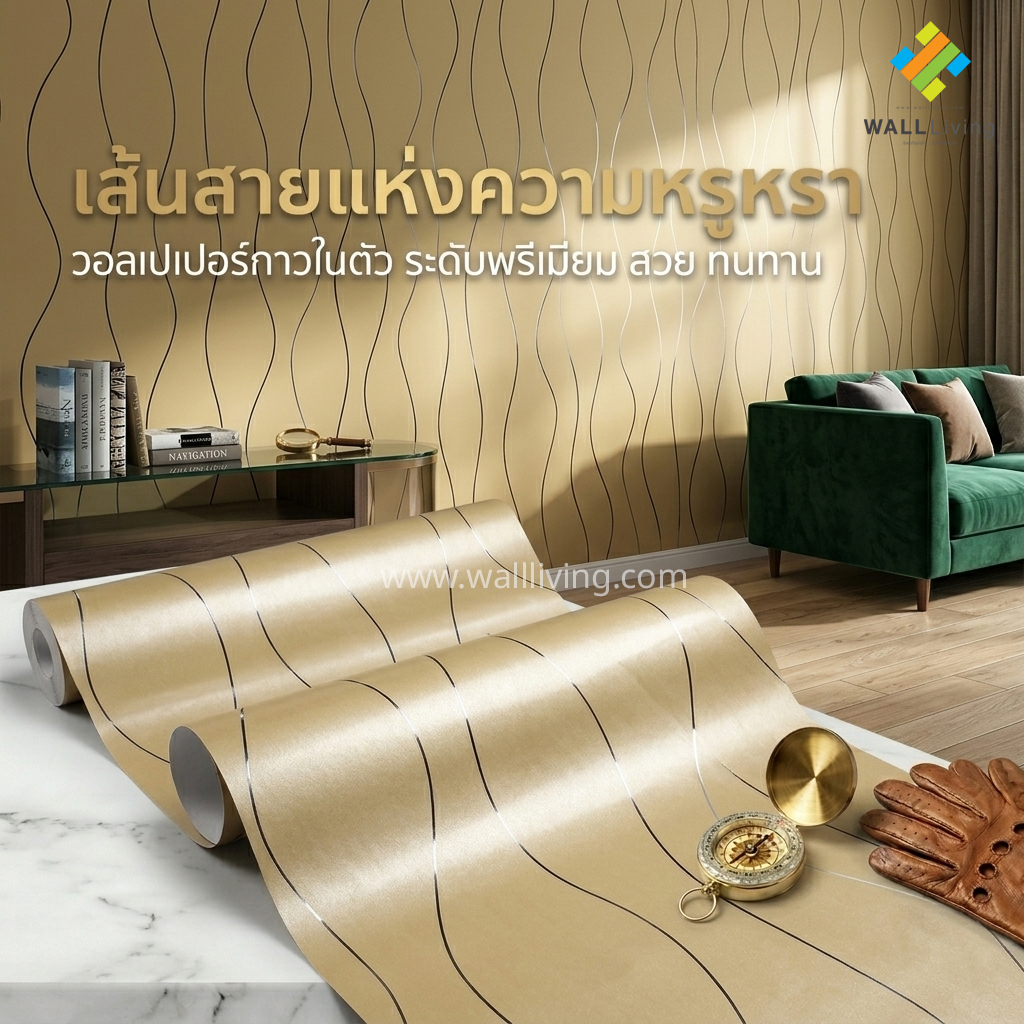 วอลเปเปอร์ติดผนังลายเส้นสีทอง เป็นอีกหนึ่งตัวเลือกยอดนิยมสำหรับการตกแต่งบ้านที่ต้องการความหรูหราแบบเรียบง่าย (Modern Luxury) ด้วยการผสมผสานระหว่าง “ลายเส้น” ที่ดูมินิมอล กับ “สีทอง” ที่สื่อถึงความพรีเมียม ทำให้ผนังดูโดดเด่น มีมิติ และมีระดับมากขึ้นทันที