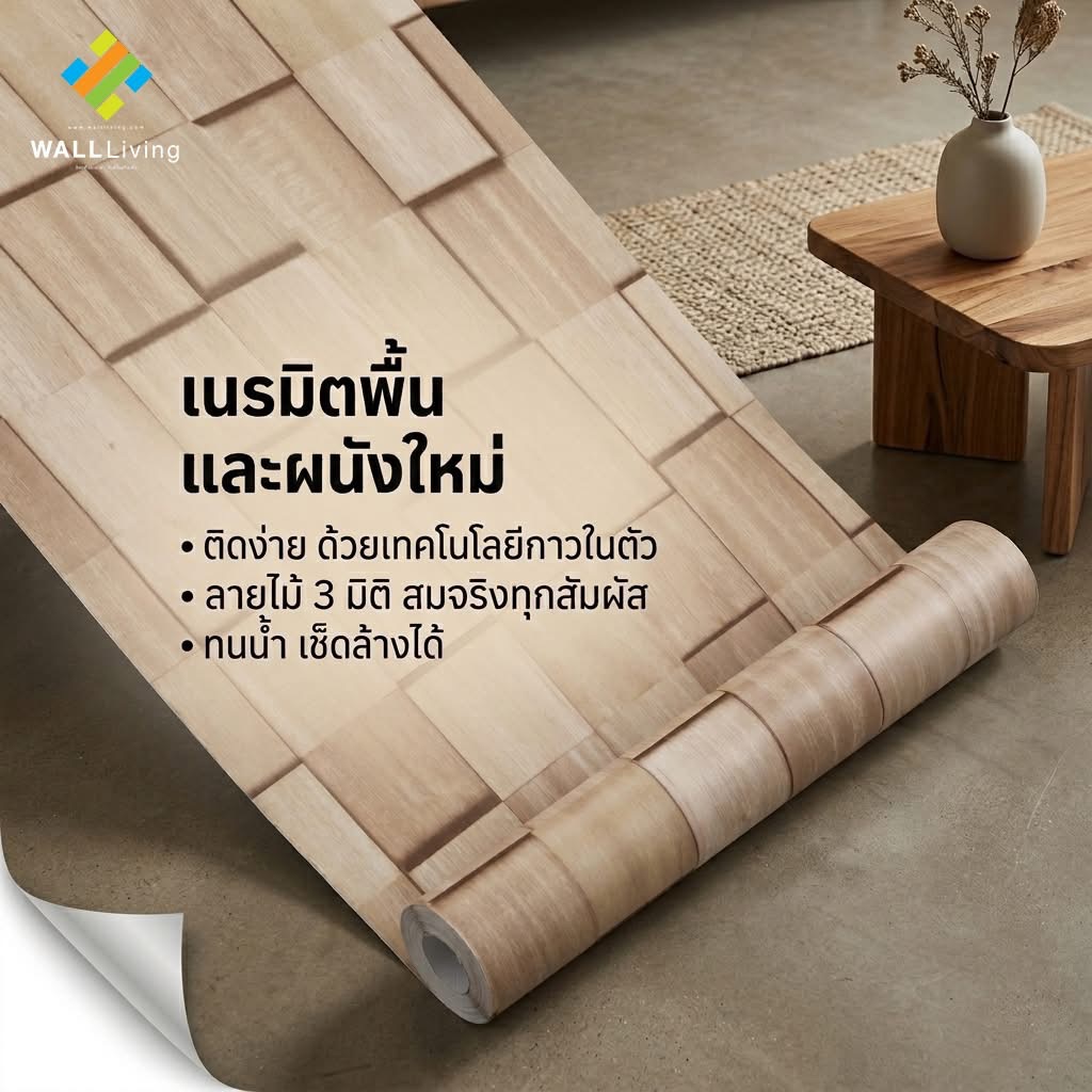 - วอลเปเปอร์ลายไม้ ติดผนัง ชนิดมีกาวในตัว